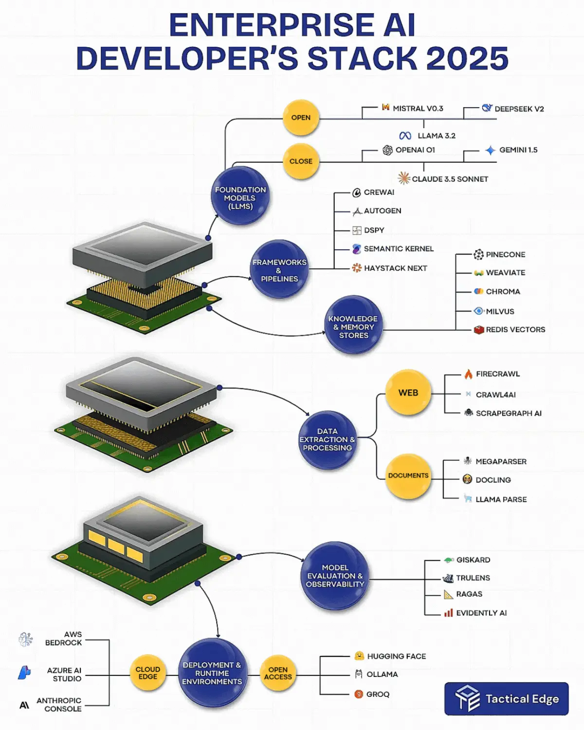 When you’re building AI systems that impact real-world decisions, half-measures won’t cut it. From national security to global finance, the race isn’t just about who has AI, it’s about who can operationalize it reliably, at scale, in the field. That’s why the Enterprise AI Developer’s Stack in 2025 looks radically different from what it did even 18 months ago.